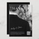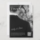 Cette carte de remerciement minimaliste présente une photo frappante en noir et blanc du couple dans une mise en page élégante de style magazine. Un code QR scannable ajoute une touche moderne parfaite pour relier à votre galerie de mariage ou message. Personnalisable recto et verso avec du texte blanc élégant pour un design épuré et intemporel.