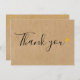 Une carte de remerciement bohème avec une typographie élégante et un cœur d'amour doré sur un fond kraft rustique. Le verso présente votre message de remerciement sur un fond kraft rustique. Conçu par Thisisnotme©