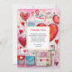 Carte de remerciements avec un motif fantaisiste. Doodles et gribouillis style Scrapbook. Coeurs rouges et roses et diverses lettres et enveloppes éparpillées partout.