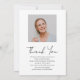 Cette carte de remerciement de collage photo mémoriel contient 25 photos, peut être pour lui ou elle, est parfaite pour être distribuée lors d'un enterrement, d'une veillée ou d'un service commémoratif. Les cartes de remerciement mémorial sont faciles à personnaliser et les styles de police, la taille et la couleur de la police peuvent être modifiés en cliquant sur le lien de personnalisation supplémentaire après la personnalisation.