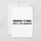 Carte "Creepin' It Real Jusqu'à la saison fiscale" - un jeu de mots éffrayant et spirituel pour les comptables, les auditeurs, les CPA et les comptables. Ce design ludique est parfait pour les professionnels de la finance qui croisent le nombre le jour et qui aiment le plaisir éffrayant la nuit. Il s'agit d'un gag de bureau saisonnier, d'un cadeau d'octobre léger ou d'une amusante surprise pour les préparateurs de déclarations fiscales, les vérificateurs et les amateurs de tableur. Idéal pour les fêtes d'Halloween, les célébrations de bureau, ou comme un cadeau unique pour quiconque équilibre les livres tout en le gardant réel.