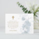 Aquarelle bleue carte de remerciements de confirmation florale avec croix de couleur or.