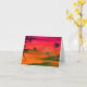Belle Carte Avec Oeuvre d'Art Japonais Représentant Un Coucher de Soleil Orange Derrière Un Paysage Coloré. Cette Belle Carte d'Art Fin Vierge Fait Une Carte Parfaite Pour Toute Occasion... Merci, Pensées Pour Vous, Meilleurs Vœux, Bonjour Etc...