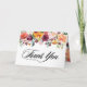Remerciez votre famille et vos amis avec cette carte de remerciement personnalisable. Elle comporte des illustrations à l'aquarelle de fleurs de couleur bordeaux, violette, orange et rose saumon avec un accent de verdure. Cette carte de remerciement florale est parfaite pour les mariages d'automne, les baby showers, les douches de mariée et autres événements. Personnalisez en ajoutant des noms et un message.