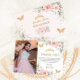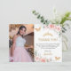Cette carte de remerciement Quinceañera chic présente une délicate aquarelle rose florale rose pâle, un feuillage vert doux et des papillons rose pâle. Personnalisez-le avec vos détails facilement et rapidement, il suffit d'appuyer sur le bouton personnaliser pour réorganiser et formater le style et l'emplacement du texte. Également idéal pour un Sweet 16, un 18e anniversaire, un enterrement de vie de jeune fille, une baby shower et bien d'autres occasions ! (c) The Happy Cat Studio