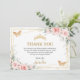 Cette carte de remerciement Quinceañera chic présente une délicate florale rose pâle à l'aquarelle, un feuillage vert tendre et des papillons rose pâle. Personnalisez-la facilement et rapidement avec vos détails, il suffit d'appuyer sur le bouton de personnalisation pour réorganiser et formater le style et l'emplacement du texte. Également idéal pour un Sweet 16, un 18e anniversaire, une douche de mariée, une baby shower et bien d'autres occasions ! (c) The Happy Cat Studio