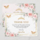 Carte De Remerciements Couronne Fleurie Rose Pâle Papillon Quinceañera en