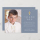 Carte De Remerciements Croix Bleue Dusty moderne Boy Photo First Communio