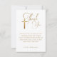 Reconnaissance Express avec cette Calligraphie Minimale de Croix d'Or Premier Carte de remerciements Communion. Conçue avec une touche élégante et moderne, cette carte simple mais sophistiquée présente une délicate croix d'or et une calligraphie de script pour un look intemporel. Parfait pour partager l'appréciation après une première communion sainte, ce design religieux minimaliste transmet la chaleur et la foi avec grâce. Personnalisez votre message et envoyez vos sincères remerciements dès aujourd'hui !