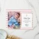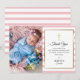 Carte De Remerciements Croix dorée Baptême Photo rayure rose