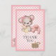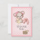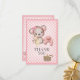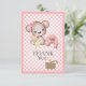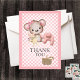 Envoyez ces adorables notes de remerciement à vos invités ; ils les aimeront. Joli ours en peluche marron sur un arrière - plan à damiers rose et blanc avec lapin lapin lapin, éléphant et panier à pique-nique.