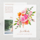 This flat wedding thank you design features vibrant pink and orange watercolor florals paired with elegant script and timeless typography. The front showcases the floral artwork and couple’s names, while the back includes a preprinted thank you message and space for a personalized wedding photo. Designed as a ready-to-send flat card, it offers a polished, cohesive look without requiring handwritten notes. Ideal for couples planning a colorful, modern, or garden-inspired wedding.