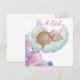 Celebrate the upcoming arrival of your precious little one with this whimsical and enchanting invitation. Featuring a sweet, hand-drawn illustration of a baby girl peacefully sleeping on a soft, fluffy cloud, this design is framed by a delicate border of watercolor flowers in shades of lavender, purple, and soft pink.