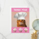 Note de remerciement amusante mettant en vedette un chaton mignon dans son casquette de boulangerie.