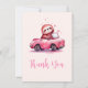 Carte De Remerciements Cute Sloth in a Pink Convertible