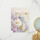 Une très belle Dahlia blanche avec des accents de pourpre et de bleu carte de remerciement de mariage. Un coin doré en haut à gauche accepte le texte. J'ai choisi le papier à coins carrés pour correspondre à l'accent de coin, avec du papier à colonnes