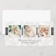 Un motif en damas d'ivoire doux fournit un arrière-plan élégant pour cette carte de remerciement plate et sophistiquée, comportant trois photos de couple encadrées dans une bande horizontale propre. Un accent de ruban de charbon élégant passe derrière les photos pour un contraste moderne et raffiné, avec le sentiment de remerciement et les noms affichés en script noir classique en dessous. Le dos est laissé ouvert pour un message manuscrit personnel. Tout le texte est entièrement personnalisable avec vos noms et date.