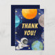 Pour le petit qui vient d'avoir une fête d'anniversaire thématique espace. La carte de remerciements spatiale de cet enfant moderne peut être personnalisée avec l'inclusion de votre propre message sur le dos. Sur le devant, le texte de conception peut être conservé tel quel ou modifié. Merci à vos invités d'être venus avec ces cartes de remerciement thématiques espace mignon.