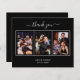 Ajoutez 3 de vos photos d'anniversaire, la taille verticale, une date, un nom et la note de remerciement. Un arrière - plan noir classique avec texte et cadre blancs. Le texte : Merci sur l'avant et votre nom sur l'arrière sont écrits avec une écriture manuscrite stylisée avec des swashes.