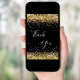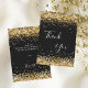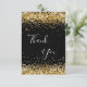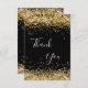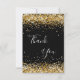 Un carte de remerciements d'anniversaire féminin et élégant. Une couleur noire arrière - plan. Avec des confettis en faux or. Sur l'avant grand main écriture et le texte : Merci. Retour : Personnalisez et ajoutez Votre note de remerciement et votre nom. Le nom est écrit avec un script de style moderne écrit à la main.