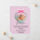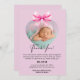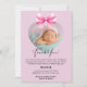 Cette carte de remerciements de petite fille douce et élégante est dotée d’un arrière - plan rose pastel, d’un arc de style aquarelle et d’un cadre photo en forme de coeur pour présenter la photo de votre nouveau-né. Parfait pour annoncer l'arrivée de votre petite fille et exprimer une profonde gratitude à vos amis et à votre famille.