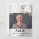 Un carte photo Merci d'anniversaire moderne. Un arrière - plan faux argenté décoré de roses blanches, de fleurs et de dentelle. Personnalisez et ajoutez votre photo à l'avant et merci note sur le dos.