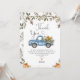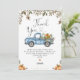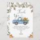Baby shower Citrouille bleu Carte de remerciements de baby shower doux automne thème garçons carte de remerciements avec un camion bleu, divers citrouilles, un peu vert, feuillage brun, et un coeur orange. Le carte de remerciements de baby shower de camion citrouille de ce garçon présente également une texture de parties scintillant d'or faux et est idéal pour un baby shower garçon à thème d'automne.