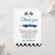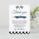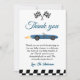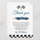 Carte de remerciements pour la fête d'anniversaire d'un enfant avec une course automobile. "Le Merci neige beaucoup pour rendre mon anniversaire si merveilleux"
