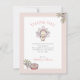 Ce Carte de remerciements de Baby shower Girl Fall & Thanksgiving comporte une jolie dinde de fille dessinée à la main, une tarte et des feuilles d'automne sur le devant avec message de remerciement personnalisable et nom de famille. Le dos est muni d'un motif en vichy plumes sur un arrière - plan crème d'abricot.
