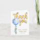 Envoyez des remerciements sincères avec cet élégant carte de remerciements de baby shower avec un ballon bleu aquarelle, une végétation d'eucalyptus et un script doré brillant. Une belle façon de rendre hommage aux invités après une fête de bébé garçon, cette carte ajoute une touche personnalisée et charmante.