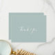Ce carte de remerciements de coordonnées verdoyantes est parfait pour un mariage de boho. Le design élégant et rustique présente un vert sauge pastel pâle et une atmosphère boho moderne. Coordonnée avec la collection Airy Greenery par Fresh & Yummy Paperie. Personnalisez le dos de la carte avec vos noms, et un message de remerciement. Sinon, laissez la section modèle de message de remerciement vide pour écrire à la main une note personnalisée sur chaque carte après leur arrivée. Ces cartes peuvent être utilisées pour un mariage, une douche nuptiale ou tout événement spécial.