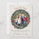 Ce Carte de remerciements de Noël de campagne festif présente des illustrations occidentales dessinées à la main d'une couronne de pin avec des bottes de cowboy, casquette de cowboy, des baies sèches, des cactus et des ornements vintages de xmas à l'encre noire. Téléchargez votre propre photo de famille et modifiez le texte pour le rendre unique. L'arrière présente un joli motif de ces éléments de pays. Élégant arrière - plan d'ivoire.