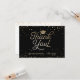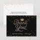 Cette Carte de remerciements élégante et festive présente des confettis d'or (feuille simulée) avec les mots "Merci" qui apparaissent dans une police de caractères en or. L'arrière - plan est noir, mais peut être changé à n'importe quelle couleur de votre choix. L'arrière de la carte comporte une zone de message ainsi qu'un espace vide ci-dessous pour que le diplômé signe son nom et une éventuelle note manuscrite supplémentaire. Une belle et simple façon de remercier les invités.