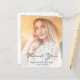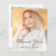 Carte de remerciements moderne de graduation avec une photo verticale personnalisée sur l'avant et une photo horizontale sur l'arrière. Les mots "Merci" apparaissent dans un script gris fusain foncé, avec votre nom et année de graduation ci-dessous dans la police sans serif. Personnalisez le revers avec un message de votre choix en gris sans serif et ajoutez votre ligne de signature dans la police d'écriture décorative. Remplacez facilement l'exemple d'images par vos propres photos. Un écran en dégradé blanc permet de s'assurer que le texte à l'avant de la carte pops. Idéal pour obtenir un diplôme d'études secondaires ou collégiales.
