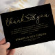 Ajoutez une touche de luxe à votre diplôme avec nos cartes de remerciements élégantes et sophistiquées. L'arrière - plan noir élégant jumelé à une police de script moderne capture sans effort votre gratitude. Personnalisés avec votre nom, votre école, votre année et un message sincère, ces cartes de remerciement célèbrent parfaitement votre voyage scolaire tout en exprimant votre appréciation.
