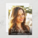Carte de remerciements de remise de diplômes élégante et économique avec la photo du diplômé superposée avec "merci" dans un élégant script blanc et leur nom, l'école et l'année de classe en simple typographie blanche. Au contraire, personnalisez un message de remerciement et ajoutez le nom du diplômé dans un script signature.