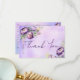 Élégante carte de remerciement de mariage violet clair aquarelle pivoines et fleurs de glycine éclatantes carte de remerciement