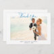 Cette carte simple et élégante de mariage vous remercie à plat présente du Merci sur l'avant et le dos dans un ton bleu appelé océan bleu bateau avec vos noms et date de mariage sous votre photo, ce qui le rend parfait pour un mariage de plage expression de gratitude. À l'arrière, vous pouvez supprimer l'exemple de texte et laisser l'espace entier vide afin de pouvoir écrire une note à la main, si vous le souhaitez. Vous pouvez également modifier l'exemple de texte en fonction de votre choix. Dans n'importe quel coque, n'oubliez pas de supprimer tout l'échantillon de texte dont vous n'avez pas besoin et l'échantillon de photo également. Vous pouvez également modifier la couleur et la police de n'importe quel texte en fonction de votre style. Faites de ce mariage de mariage de plage le vôtre uniquement avec votre photo préférée et votre inspiration!