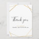 Ajoutez une touche de style à votre grand jour avec l'élégant Carte de remerciements Gold Geometry Photo Mariage. Avec un placement photo sophistiqué aux accents géométriques or, cette carte de remerciements est une façon chic et contemporaine de vous remercier après le mariage Vous avez la possibilité de changer le message, la photo, les noms et les couleurs. Veuillez noter que l'effet or est imprimé.