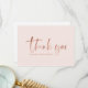 Belle carte mariage moderne. Présente les mots remercient dans un faux script rose or stylish sur un arrière - plan rose vif sur le devant avec un sentiment simple sur le dos.