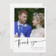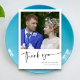 Merci à votre mariage avec notre exquise "Carte de remerciements de Mariage Elégant Personnalisé". Cette carte étonnante présente un magnifique "Merci" en écriture élégante, ajoutant une touche de sophistication à votre message sincère. Le recto de la carte présente une photo personnalisée, de style polaroïde, capturant parfaitement la joie et l'amour de votre journée spéciale. Personnalisez la carte en ajoutant vos noms, votre date spéciale et votre emplacement mariage, ce qui en fait un souvenir précieux qui raconte votre histoire d'amour unique. L'arrière de la carte comporte un message de gratitude noir personnalisé, joliment fusionnant le script et la typographie moderne contre un arrière - plan blanc immaculé. Ce design réfléchi vous séduira par son élégance et son charme, ce qui en fait la meilleure façon d'express de la gratitude aux invités ou aux proches. Commandez notre "Carte de remerciements de Mariage Elégant Personnalisé" et faites de votre remerciement vraiment inoubliable.