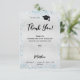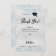 Faux arrière - plan d'apparence argentée, décoré de faux parties scintillant bleu clair, brille. Script écrit à grande main avec des swashes et le texte : Merci. Personnalisez et ajoutez votre note de remerciement et votre nom, le nom de l'école.