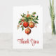 Carte de remerciements pliée avec une illustration de style vintage. 3 boules de Noël rouges entourées de saints verts et de baies. Cool rétro.
