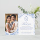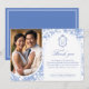 Carte De Remerciements Delft Blue Floral Chinoiserie Monogram Wedding