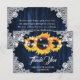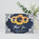 Carte De Remerciements Dentelle de tournesol rustique Mariage bleu marine