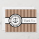 Stripes Legal Scales Of Justice Carte de remerciements (Brown)...Ce carte de remerciements juridique chic est la façon parfaite de dire merci à tous vos amis et votre famille pour leur amour et leur soutien au moment de votre diplôme de droit. Merci également cartes de remerciement pour les cabinets d'avocats à utiliser. Voir WindyCityStationery.com pour notre gamme complète de cartes de remerciement "Stripes Legal Scales Of Justice" dans une large gamme de couleurs ainsi que des invitations assorties, timbres-poste, et plus encore.