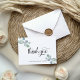 Merci à vos invités avec cet élégant carte de remerciements plié mariage avec des détails calligraphiques modernes délicats et manuscrits et de beaux éléments de verdure Eucalyptus peints à la main. L'intérieur est volontairement laissé vide pour que vous puissiez écrire un message personnel.