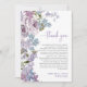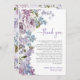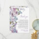 Carte de remerciements d'obtention du diplôme de fleur sauvage. Express votre gratitude pour votre diplôme d'études secondaires ou collégiales avec cet élégant carte de remerciements rustique moderne avec des lilas d'aquarelle délicats dans des violets doux, des roses lavande et des fleurs sauvages bleus avec une verdure luxuriante, et l'espace pour trois photos personnalisées sur le dos. Conçu pour les diplômes du printemps et de l'été, customisez le libellé, les styles de police, les couleurs et les tailles pour créer une note chaleureuse qui feuille une impression durable.
