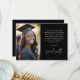 Carte de remerciements de graduation avec votre photo à gauche et message personnalisé sur un arrière - plan noir ou personnalisé.