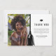 Carte de remerciement moderne avec une photo personnalisée du diplômé, un chapeau de fin d'études régal et une note de remerciement personnalisée.